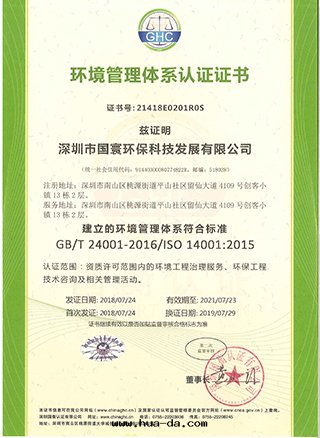环(huán)境管(guǎn)理(lǐ)體(tǐ)系(xì)认證證书