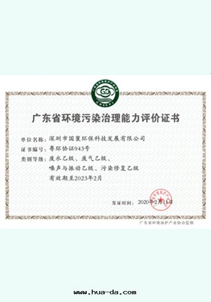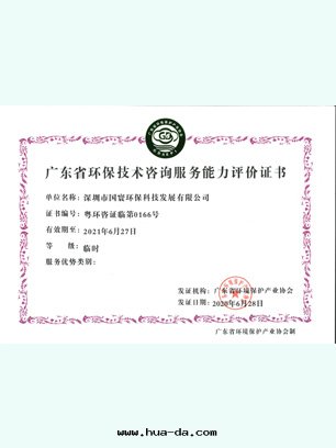 廣東(dōng)省(shěng)环(huán)境污染治理(lǐ)能(néng)力評價證书